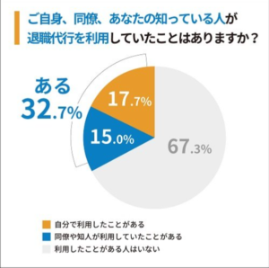 「退職代行はちょっと…」なんて声もありますが、いまでは友人・知人なども含めると、まわりの約3~4人に1人は利用したことがある・利用者を知っている とされており、めちゃくちゃ一般的になりつつあります。